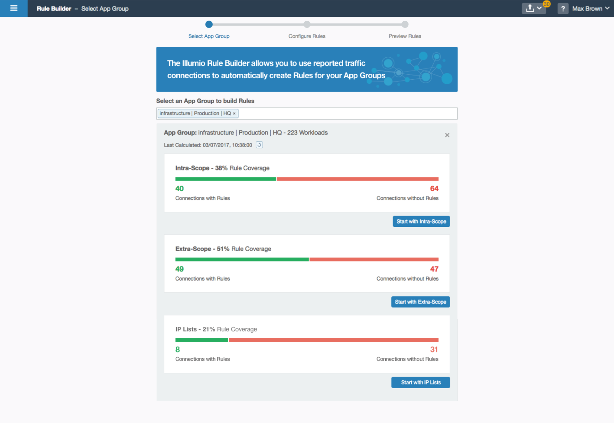 in the Illumio Adaptive Secuirty Platform, users need to write policy rules to allow communication between workloads in their network. previously they need to write those rules manually by telling the system which workloads can talk to others one by one or a few at a time. they can write rules to secure many at a time but they cannot do that unless they write a very general rule. this can be a very lengthy and time consuming process and for some users, weeks to months. i was put to the task of designing a workflow to utilize scripts which would analyze the current traffic and provide policy rules to allow secure communication across the network.