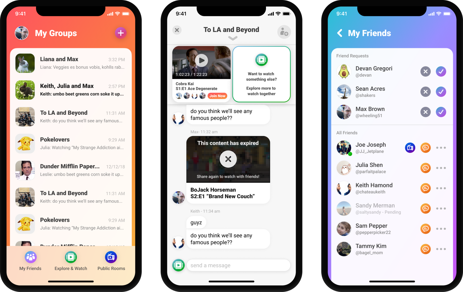 when i started at rabbit the product team had determined the new feature set and the overall direction for the next generation of Rabbit. before this release, the app and website were focused solely on the public room experience. they had reached around 3M MAU but the day 1 retention was lacking, they decided to double down on the private watch experience which consisted of adding a group chat to the platform as well as integrating content from premium providers like Netflix, Hulu, Amazon Prime and more.